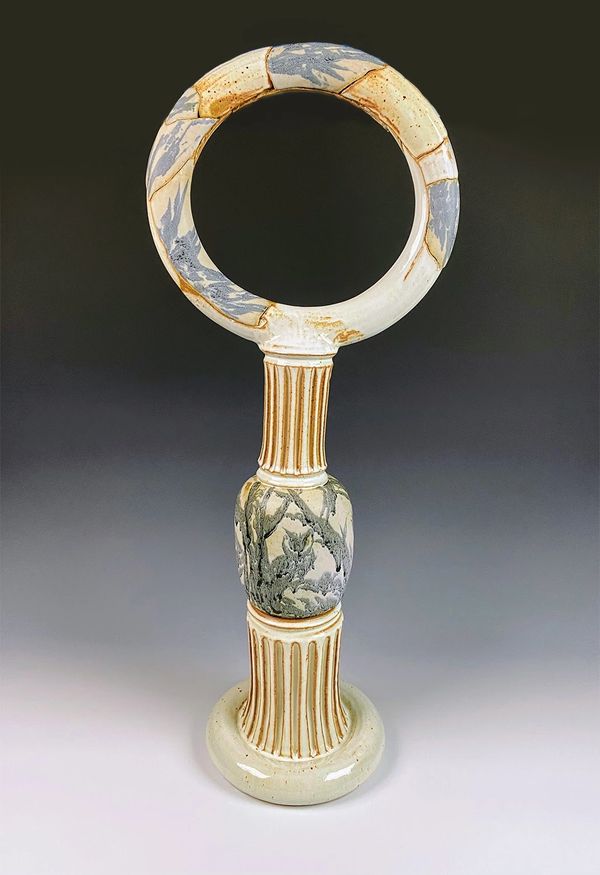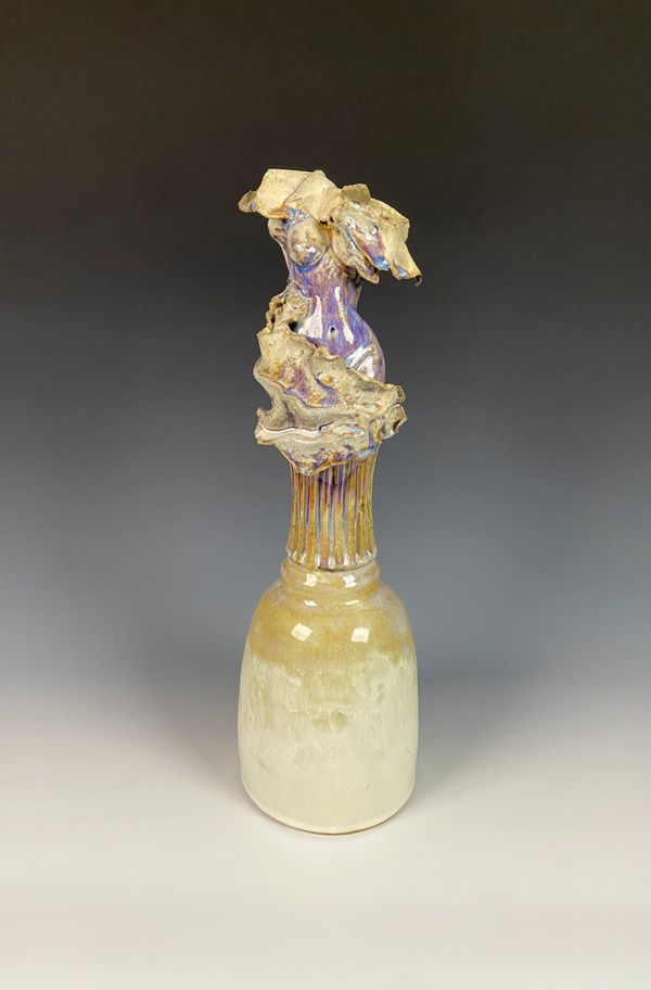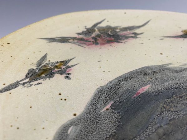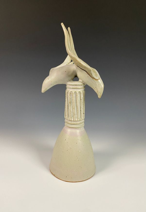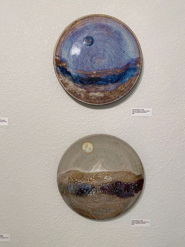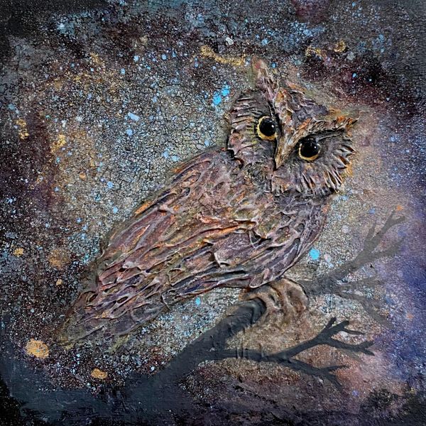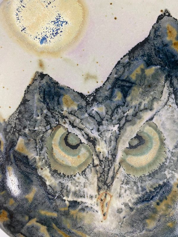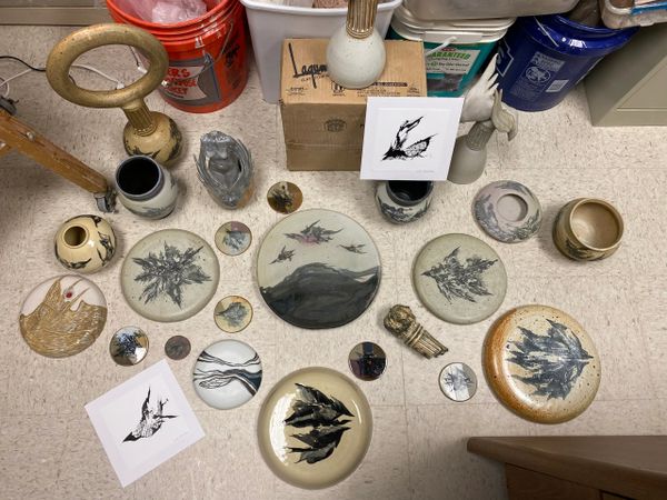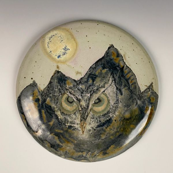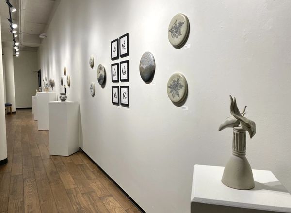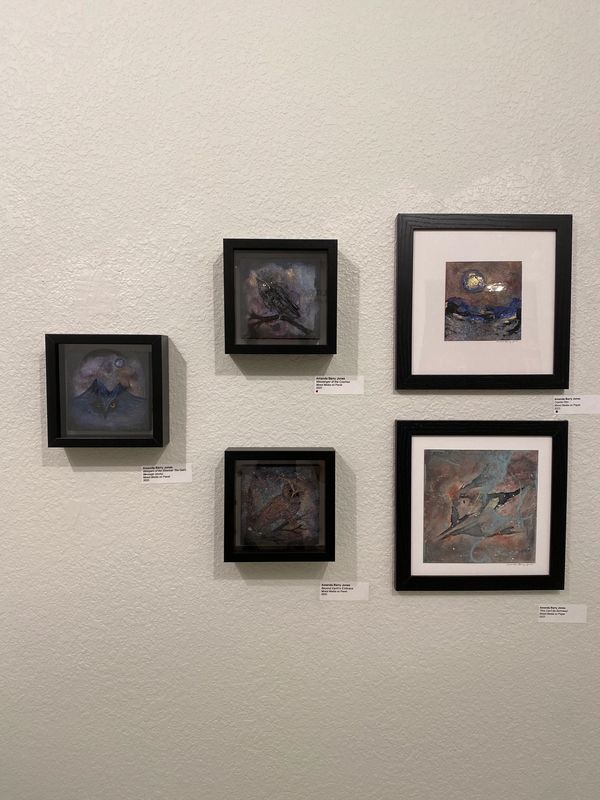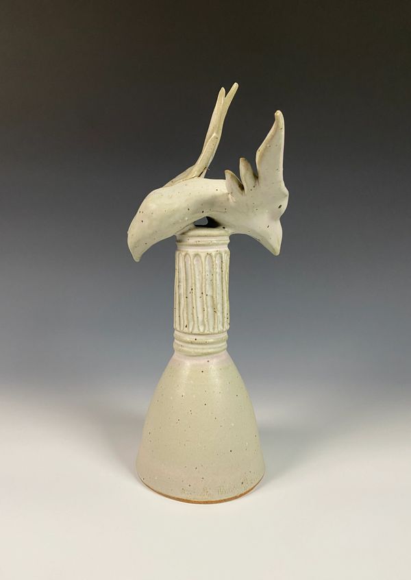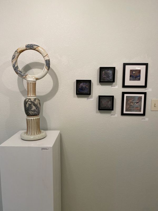 This series, Ethereality, is an exploration of the human experience and our cosmic existence. Each artwork encapsulates an essence of the spirit, often adopting birdlike forms, with a noticeable focus on the recurring owl motif - a symbol commonly associated with the afterlife. The expansive landscapes depicted compel contemplation about humanity's place in the vast universe, emphasizing the ephemeral nature of life against the cosmic backdrop. The use of ceramics, a material rooted in geological time, serves to preserve culture, convey messages, and shape identity. In essence, this series catalyzes introspection into the fleeting nature of time and our impact on this world.