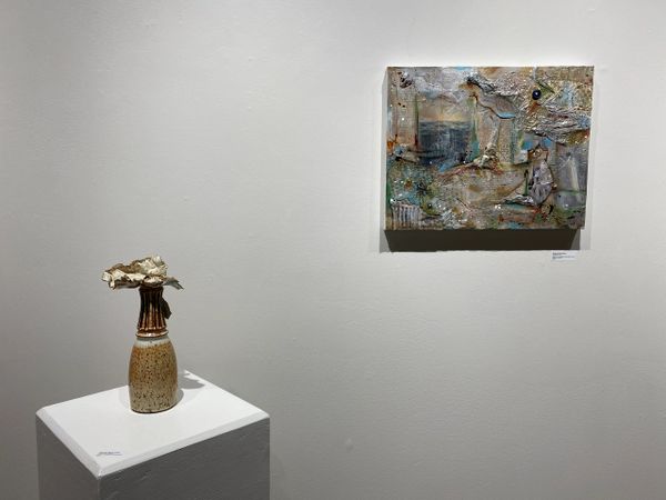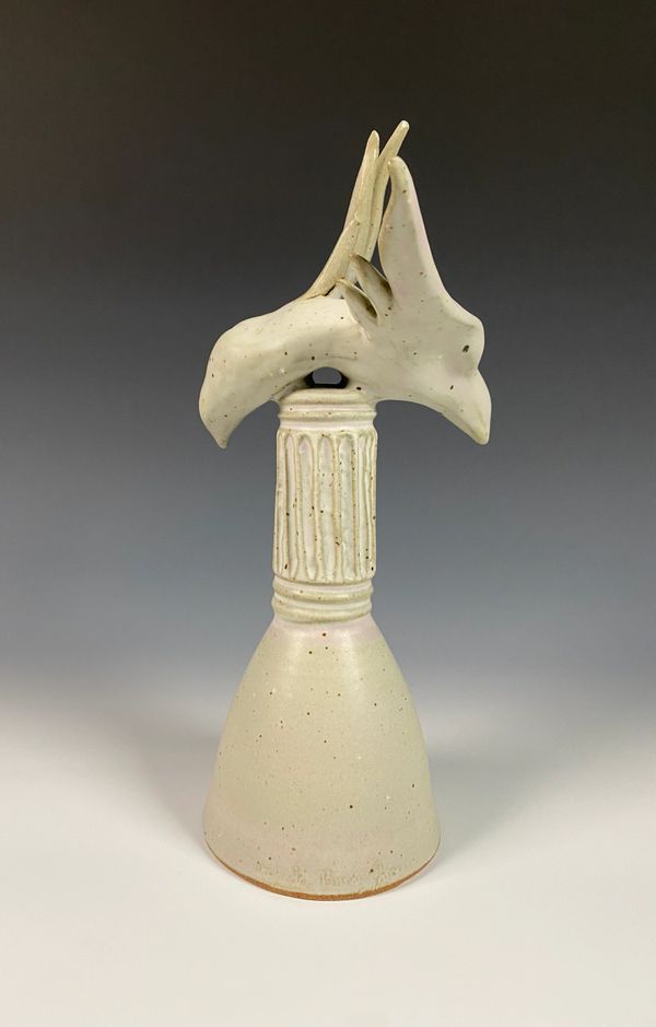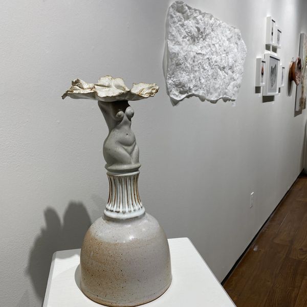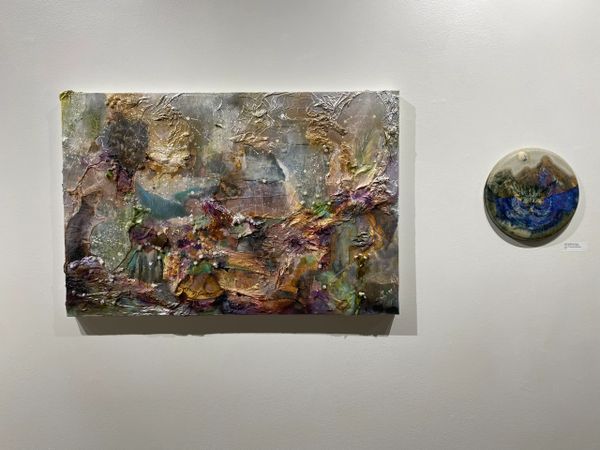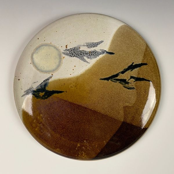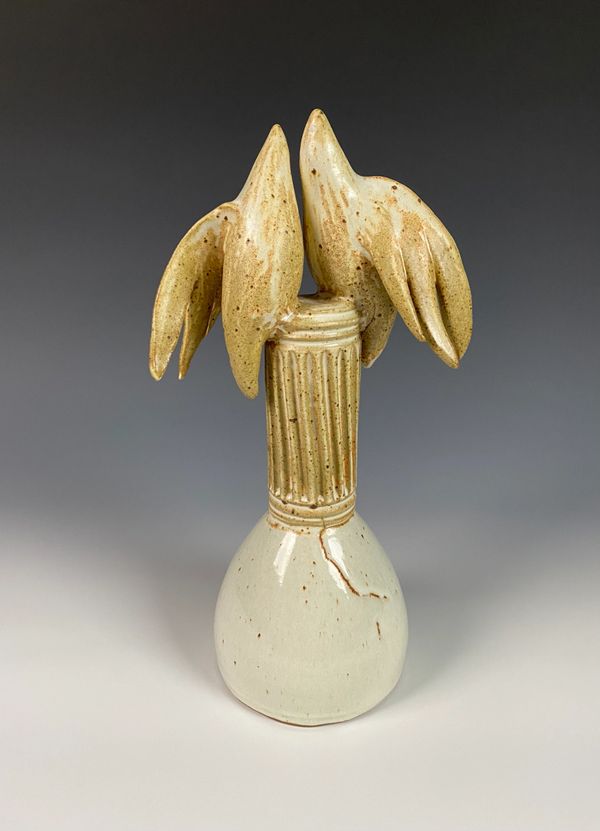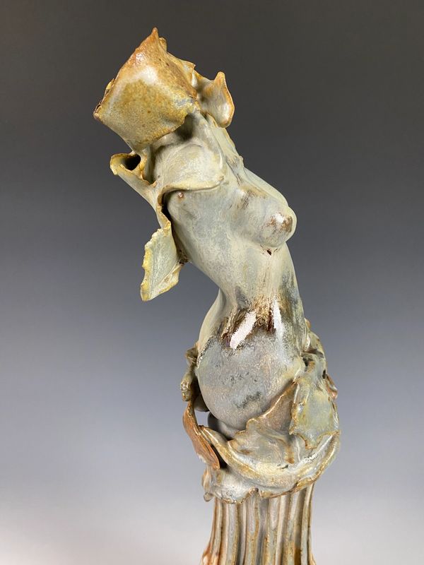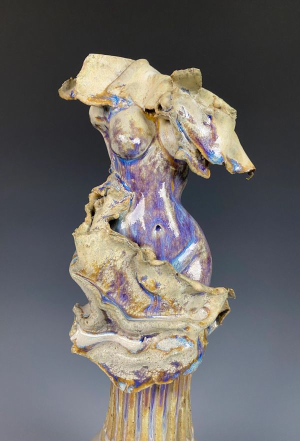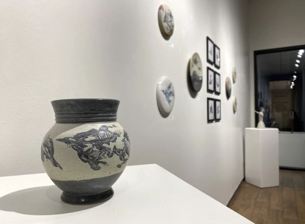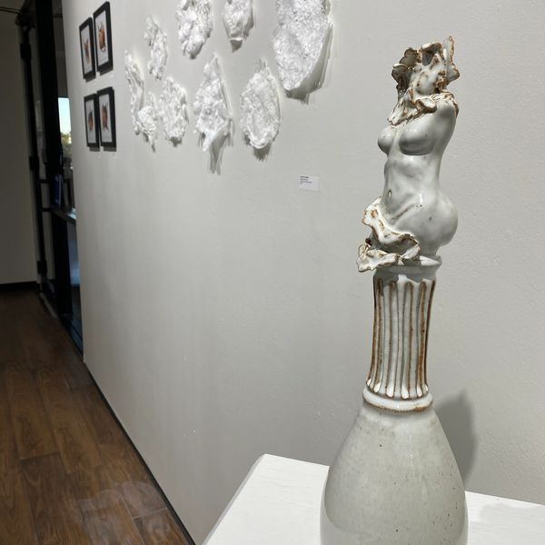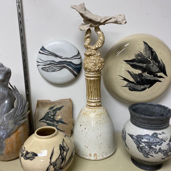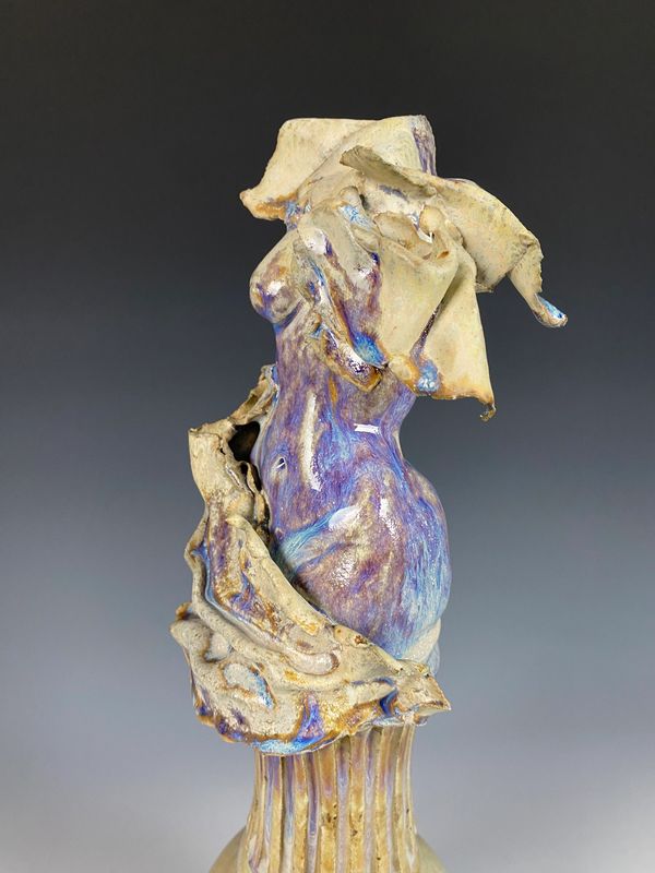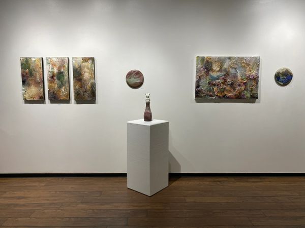 This series, Ethereality, is an exploration of the human experience and our cosmic existence. Each artwork encapsulates an essence of the spirit, often adopting birdlike forms, with a noticeable focus on the recurring owl motif - a symbol commonly associated with the afterlife. The expansive landscapes depicted compel contemplation about humanity's place in the vast universe, emphasizing the ephemeral nature of life against the cosmic backdrop. The use of ceramics, a material rooted in geological time, serves to preserve culture, convey messages, and shape identity. In essence, this series catalyzes introspection into the fleeting nature of time and our impact on this world.