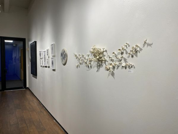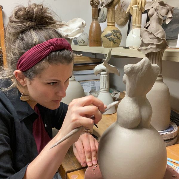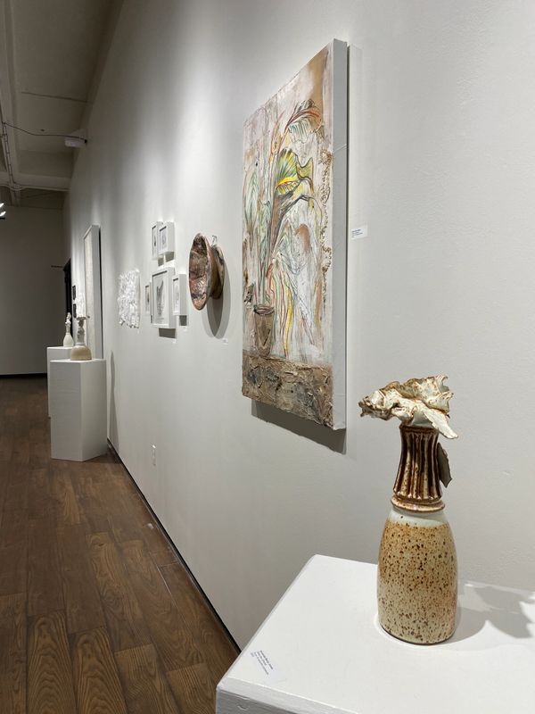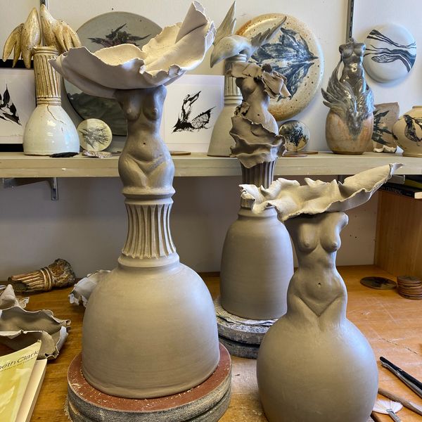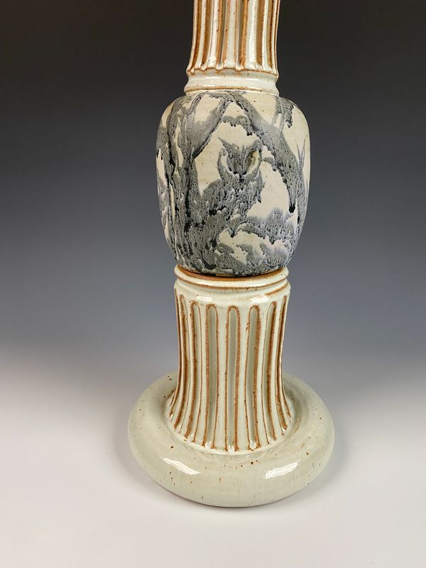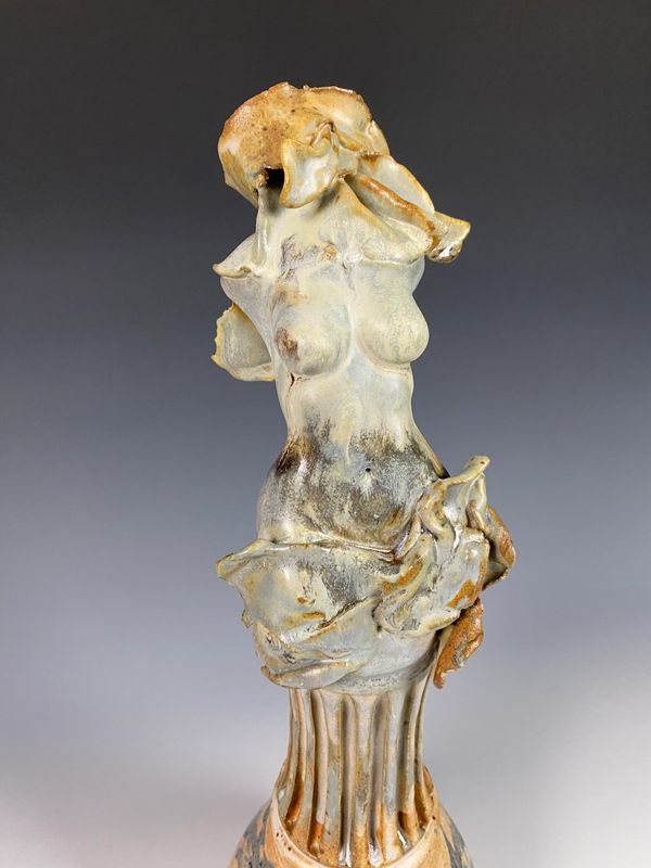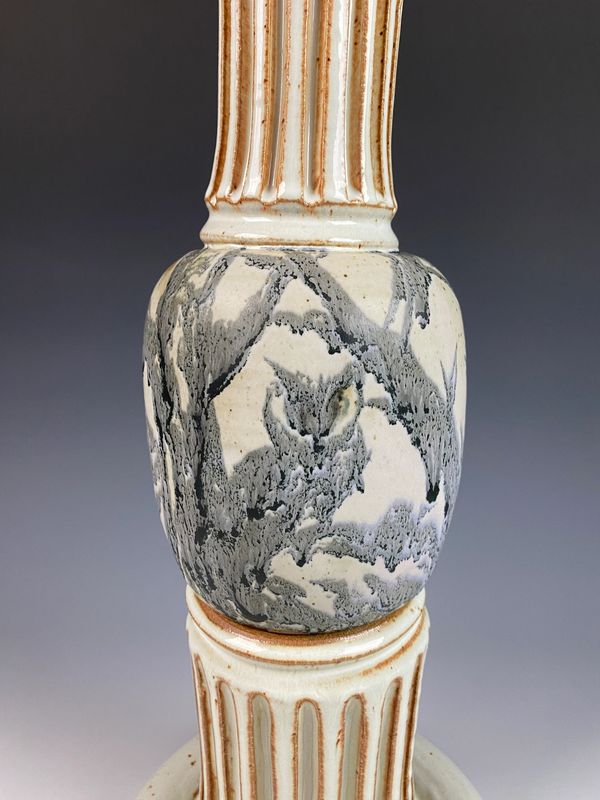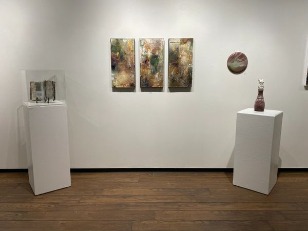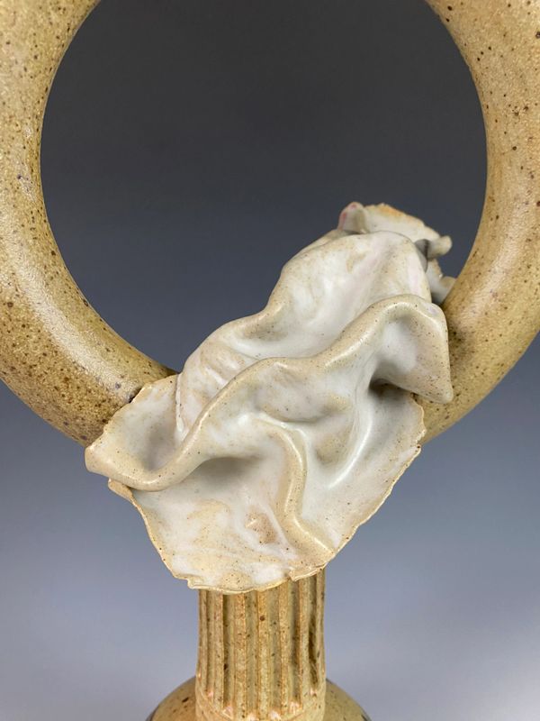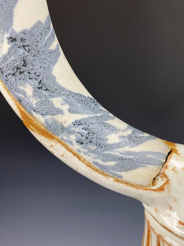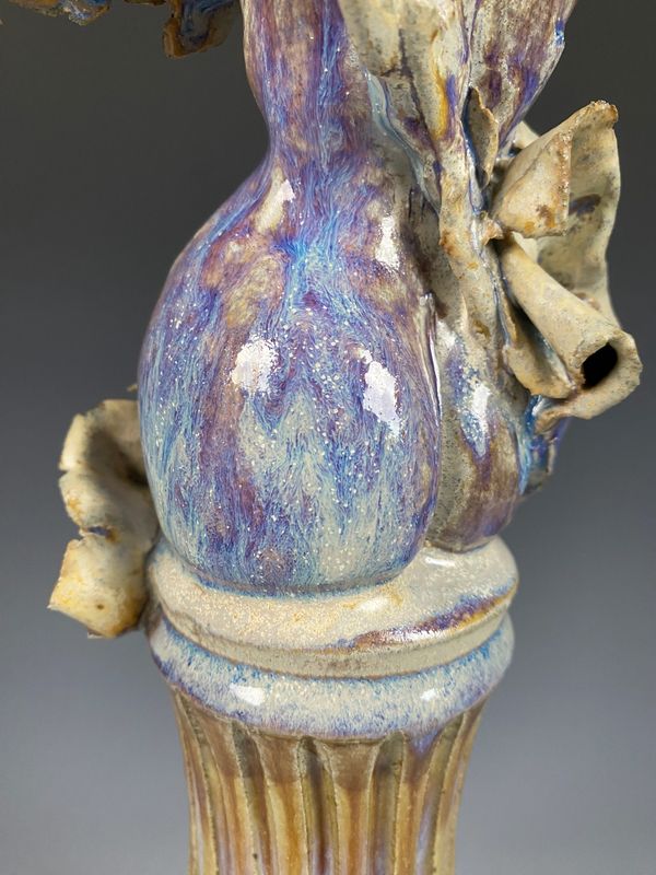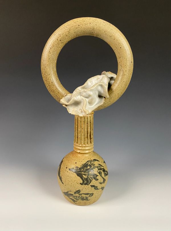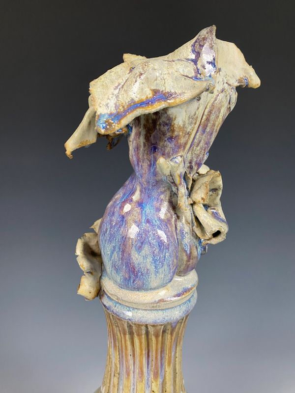 This series, Ethereality, is an exploration of the human experience and our cosmic existence. Each artwork encapsulates an essence of the spirit, often adopting birdlike forms, with a noticeable focus on the recurring owl motif - a symbol commonly associated with the afterlife. The expansive landscapes depicted compel contemplation about humanity's place in the vast universe, emphasizing the ephemeral nature of life against the cosmic backdrop. The use of ceramics, a material rooted in geological time, serves to preserve culture, convey messages, and shape identity. In essence, this series catalyzes introspection into the fleeting nature of time and our impact on this world.