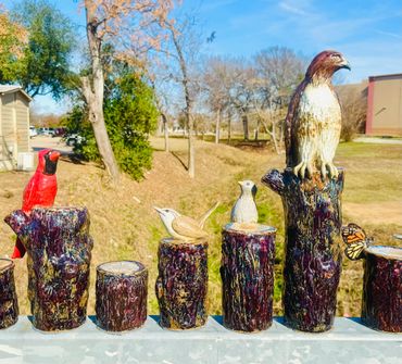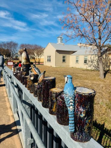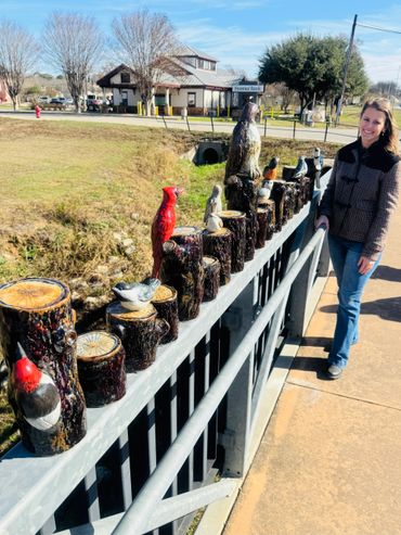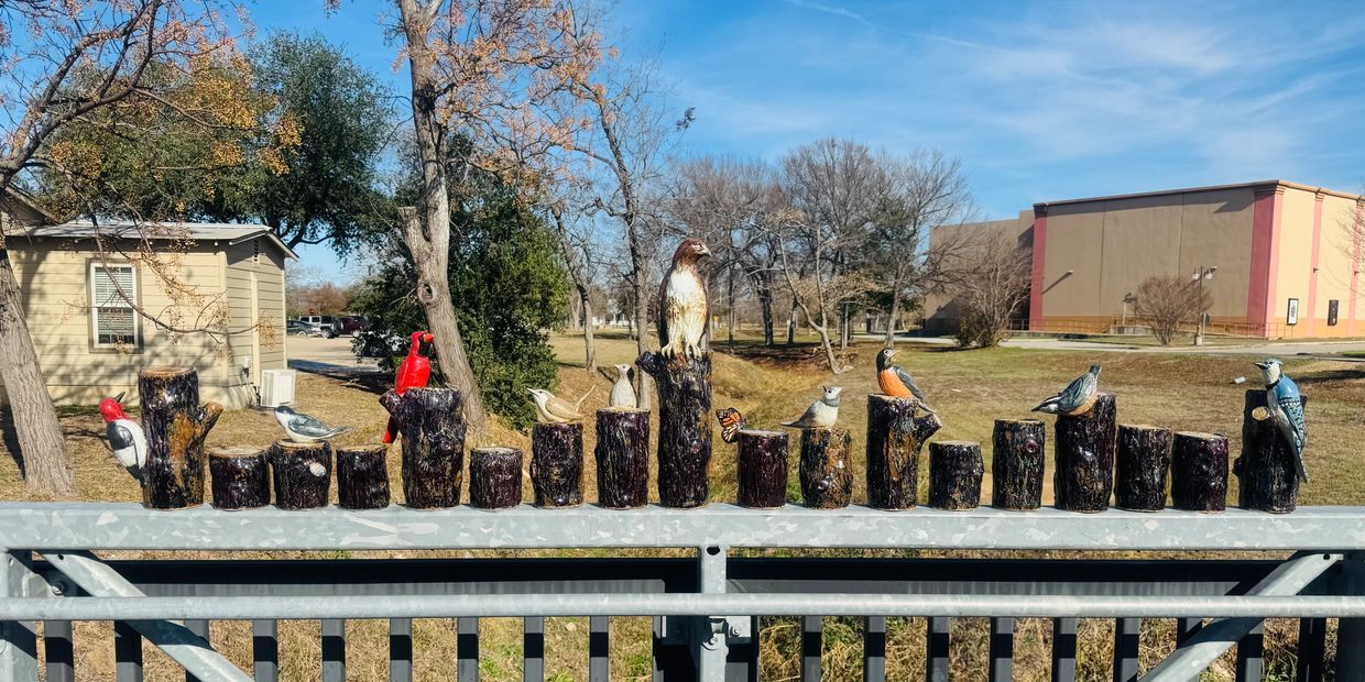 Amanda Barry Jones’s design was selected by the City of Bastrop Cultural Arts Committee for the Birds of Bastrop Sculpture Project. Submitted in May 2025, the site-specific permanent sculpture incorporates bird imagery in celebration of Bastrop’s designation as a Bird City and was designed to attach to the pedestrian bridge railing. Completed in January 2026 and unveiled on January 10, the work now adorns the Chestnut Street pedestrian bridge near the Bastrop Convention Center and Visitor Center.